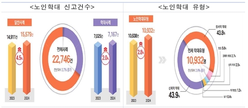 보건복지부가 오늘(13일) 제9회 노인학대예방의 날을 맞아 공개한 '2024년 노인학대 현황 보고서'에 따르면, 작년 전국 38개 지역노인보호전문기관을 통해 2만2,746건의 학대 피해 신고가 접수됐습니다.