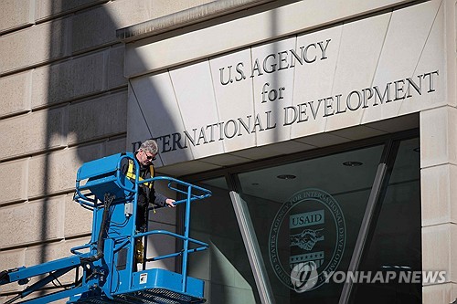 간판 떼는 미국 국제개발처(USAID)[AFP=연합뉴스 자료사진][AFP=연합뉴스 자료사진]미국 연방 항소법원이 도널드 트럼프 행정부가 해외 원조 중단 조치를 유지할 수 있도록 판결했다고 AP통신 등 외신들이 현지시간 13일 보도했습니다.