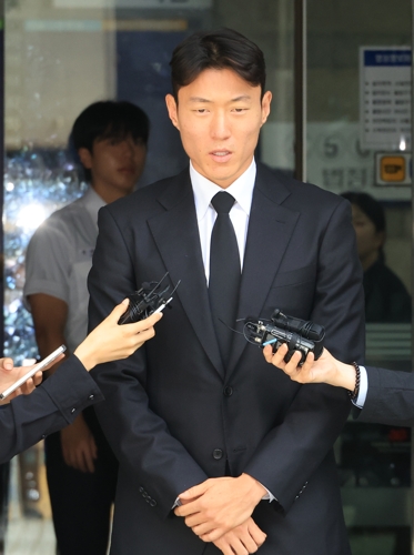 (서울=연합뉴스) 최재구 기자 = 축구선수 황의조씨가 4일 서울 서초구 서울중앙지법에서 열린 성폭력범죄의 처벌 등에 관한 특례법 위반(카메라 등 이용촬영) 혐의 2심 선고재판에서 징역형 집행유예 선고를 받고 법원을 나서며 기자의 질문에 답하고 있다. 2025.9.4
