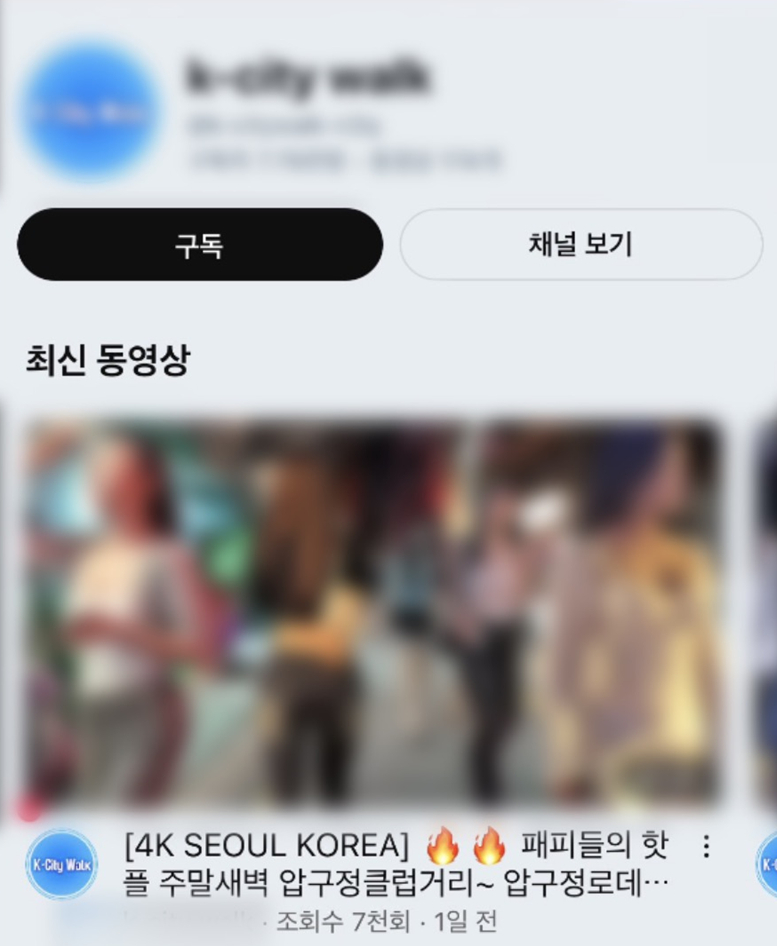 서울의 '도시 걷기' 영상[유튜브 캡처][유튜브 캡처]이와 유사한 채널은 국내에서 여러 개 운영되고 있습니다.