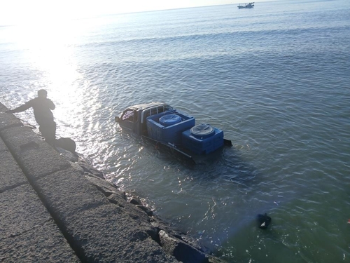 바다에 빠진 트럭[인천소방본부 제공. 재판매 및 DB 금지][인천소방본부 제공. 재판매 및 DB 금지]연합뉴스TV 기사문의 및 제보 : 카톡/라인 jebo23