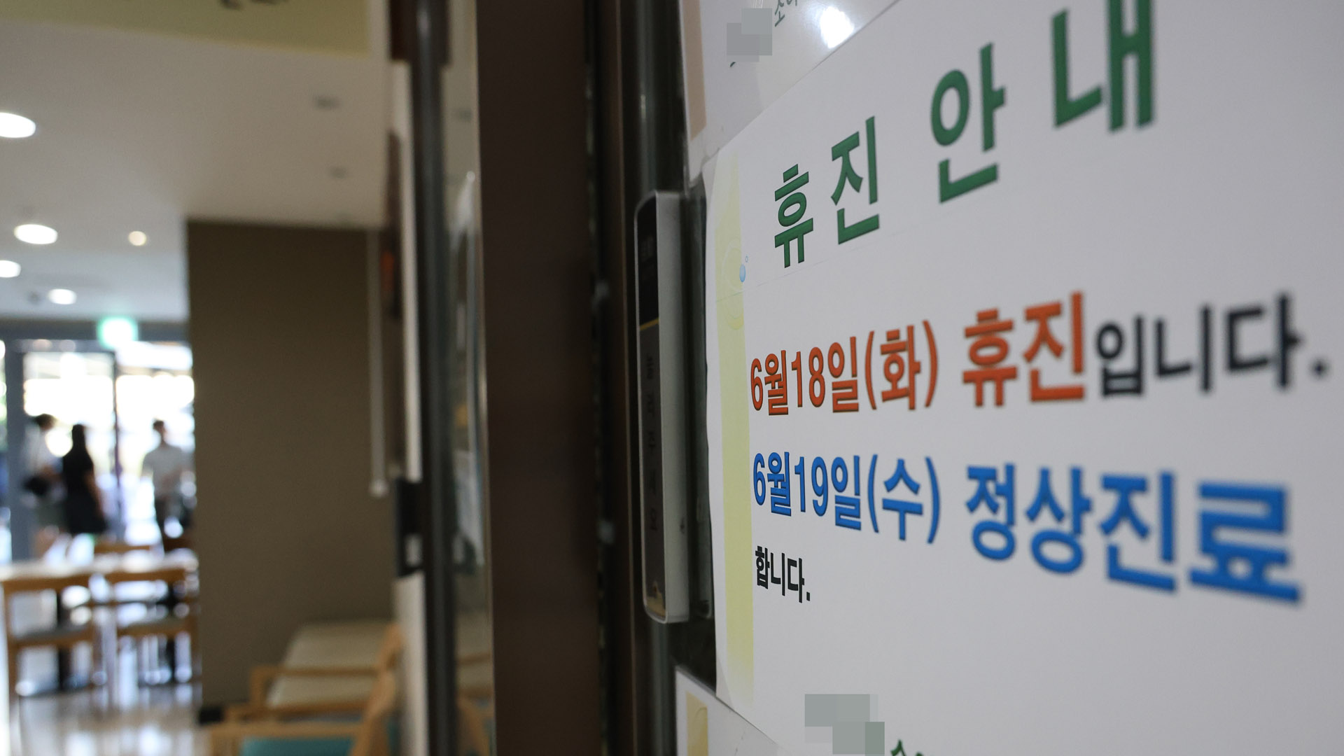내부는 불이 꺼져있고, 굳게 닫힌 문 뒤에는 휴진을 알리는 안내문이 붙었습니다.