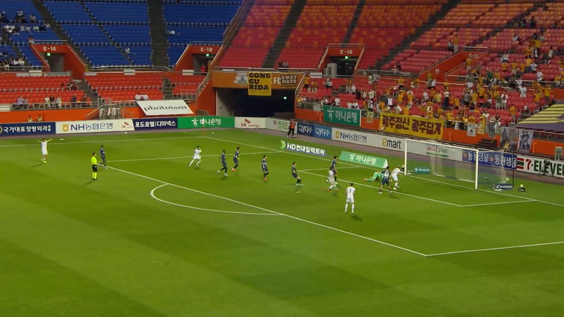전반을 득점 없이 마친 광주는 후반전 킥오프 37초만에 터진 정지훈의 골을 끝까지 지켰습니다.