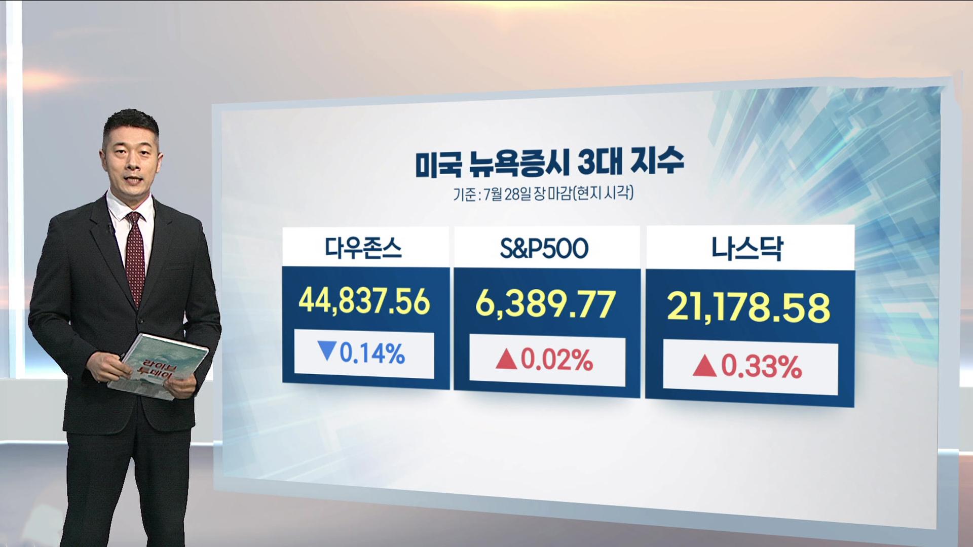 미국과 유럽연합의 무역협정 체결에도 대형 기술주들의 실적 발표와 미국 연방공개시장위원회 정례회의, 주요 경제지표 발표 등에 대한 경계감에 보합권에서 혼조세를 나타낸 건데요.