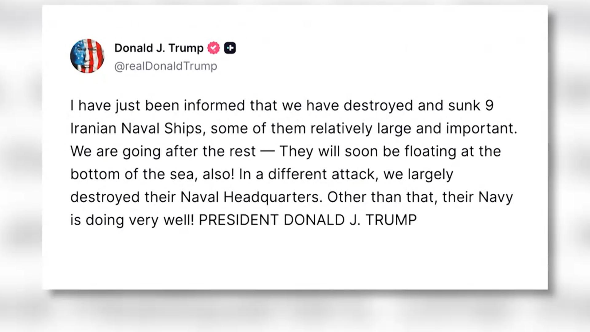 트럼프 "이란 해군 함정 9척 격침"