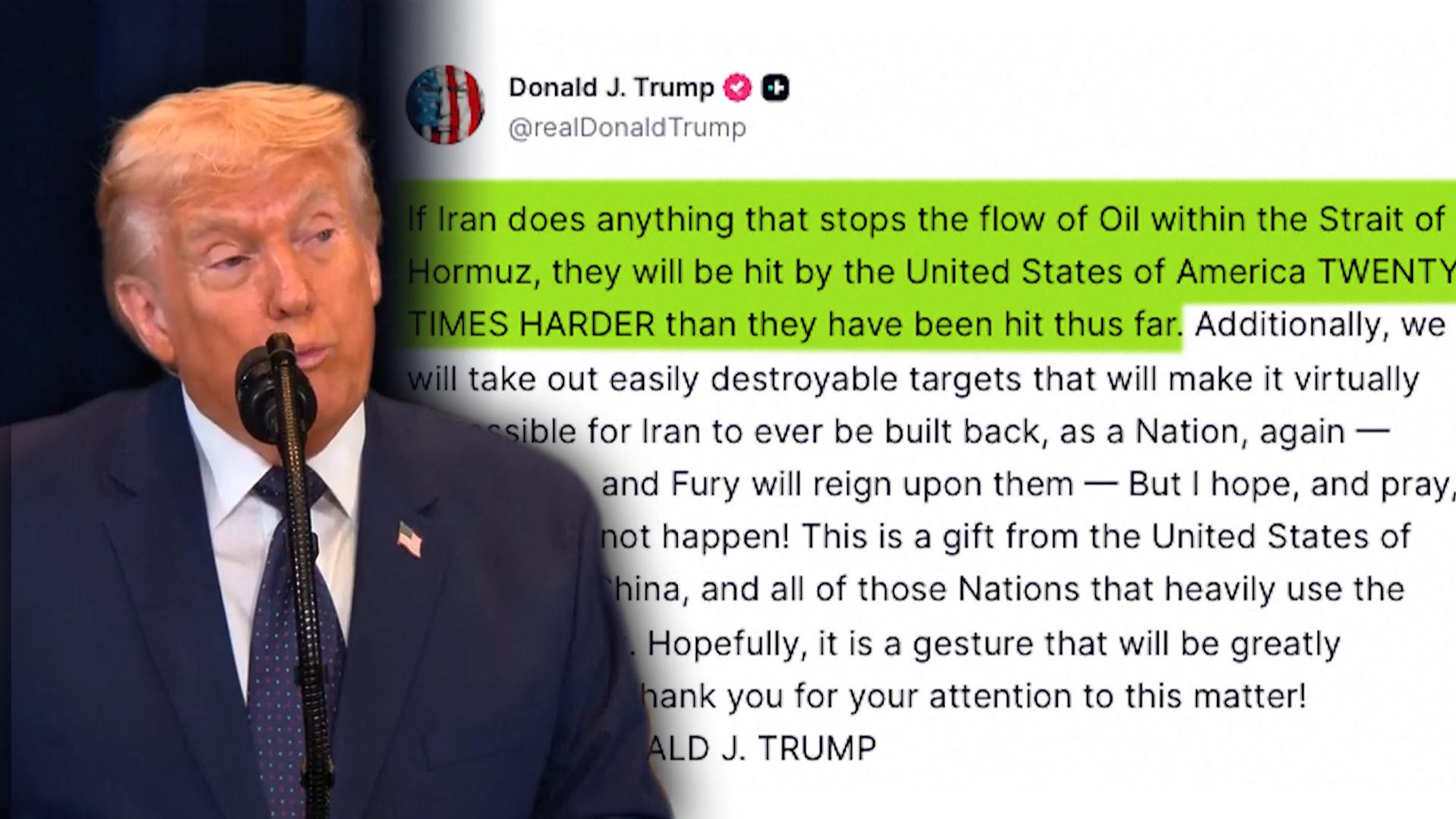 트럼프 "이란, 호르무즈 봉쇄시 20배 강하게 타격"