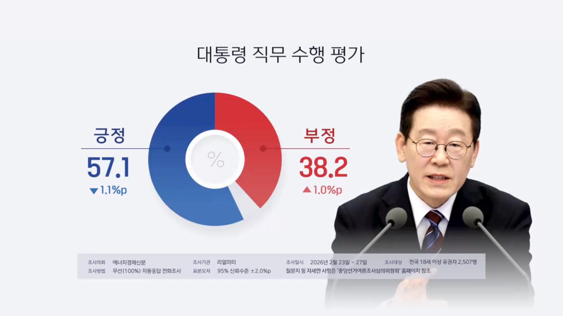 리얼미터 "이 대통령 국정지지도 6주 만에 감소"
