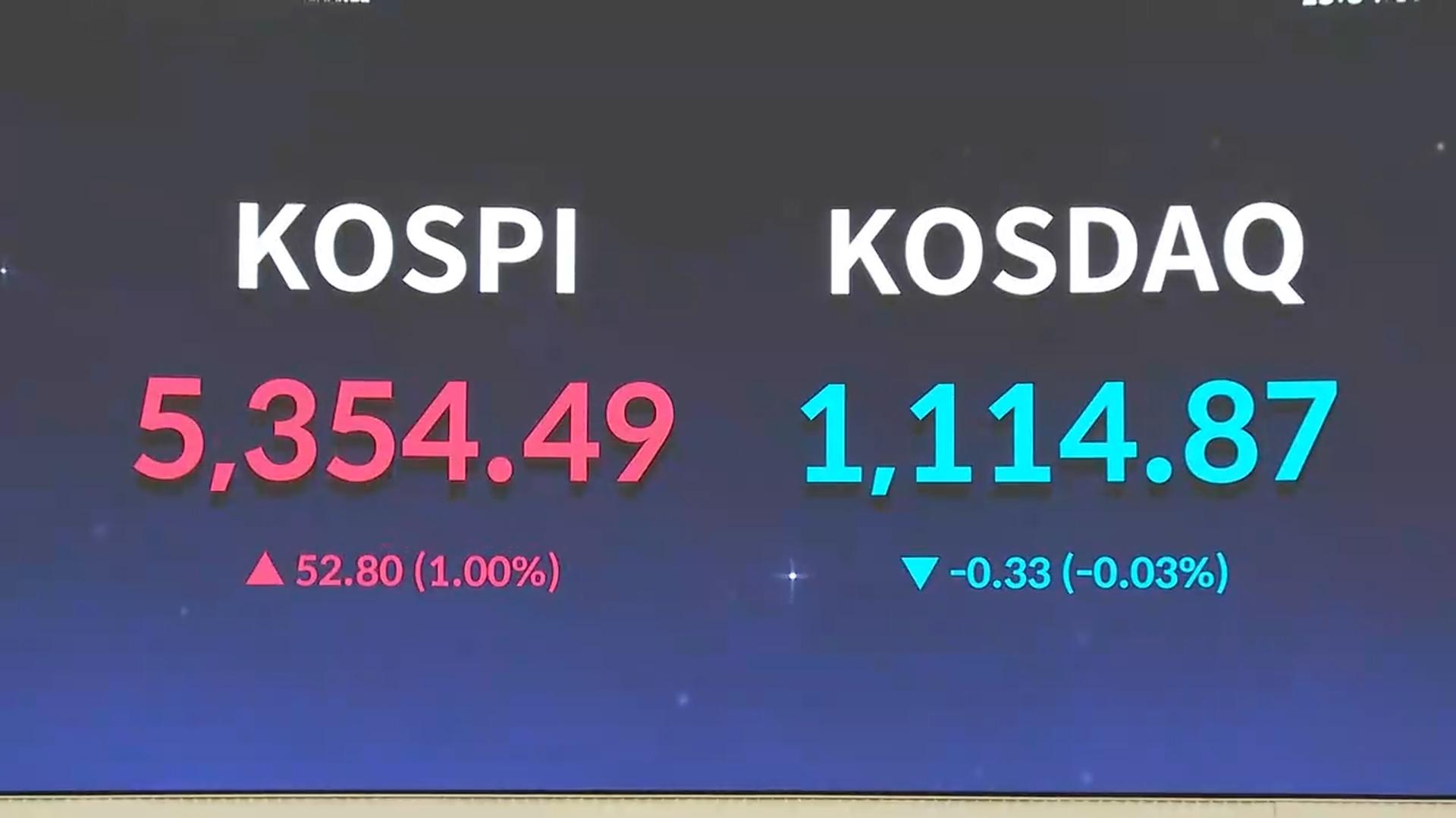 코스피, 1% 올라 5,350선 마감…코스닥은 약보합