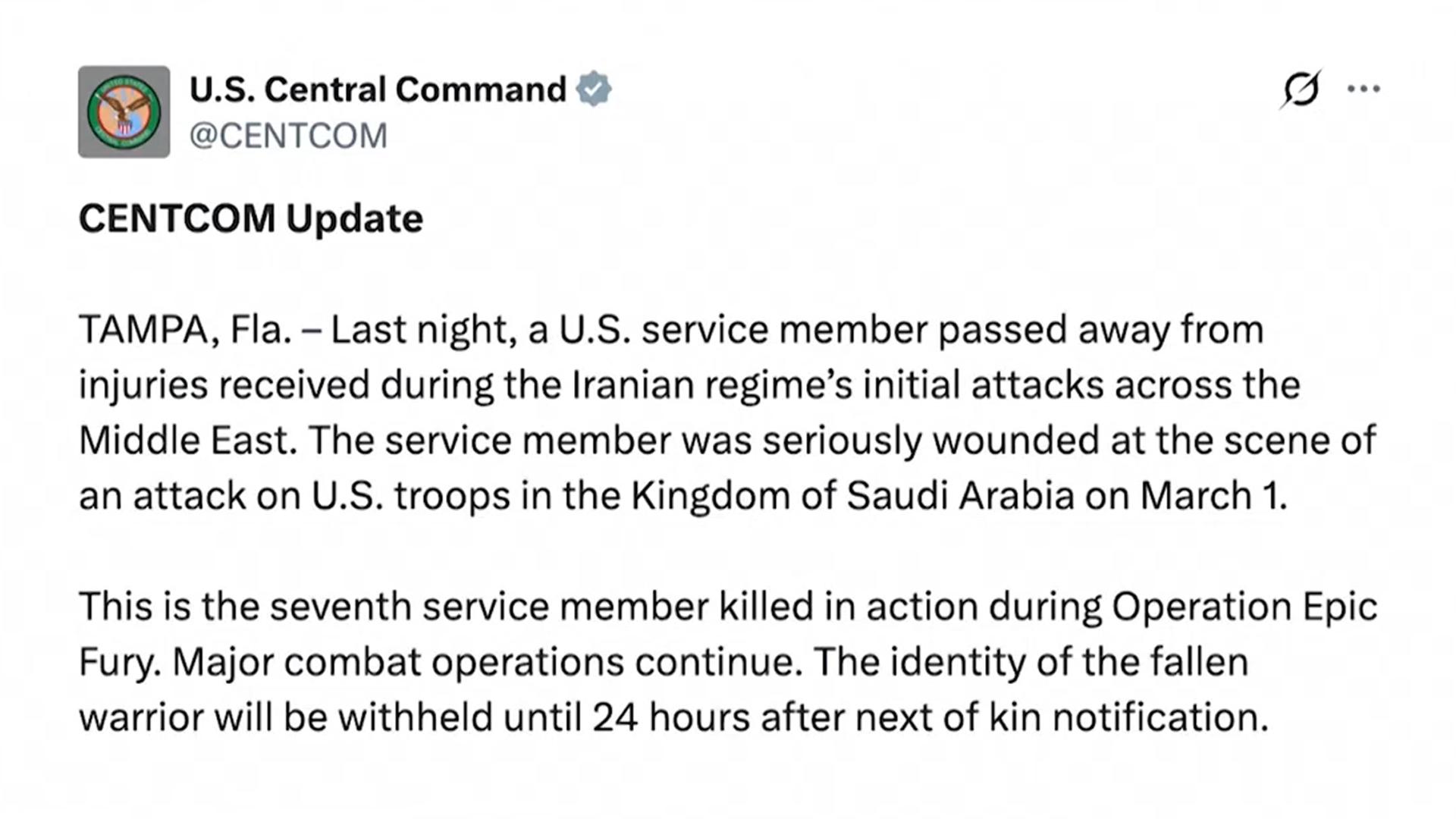이란 공격으로 사망한 미군 7명으로 늘어