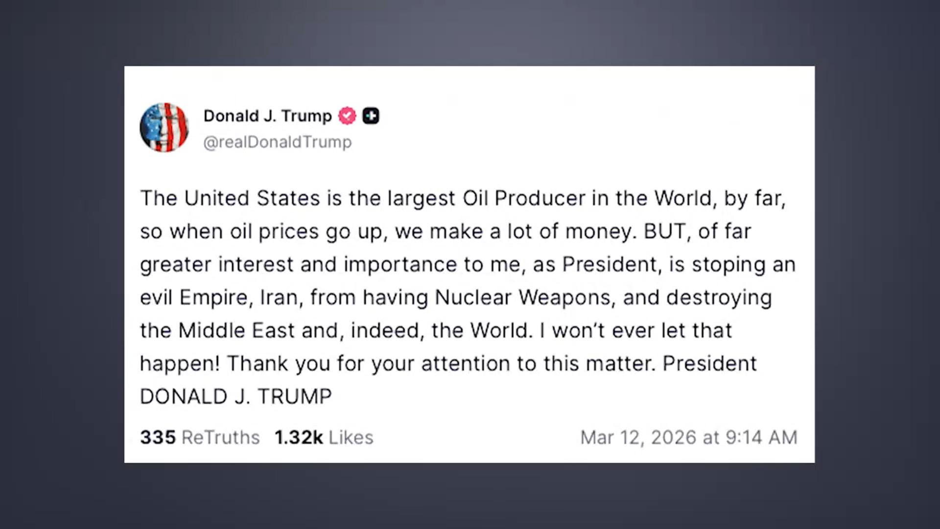 트럼프 "유가 오르면 이익…이란 막는게 더 중요"