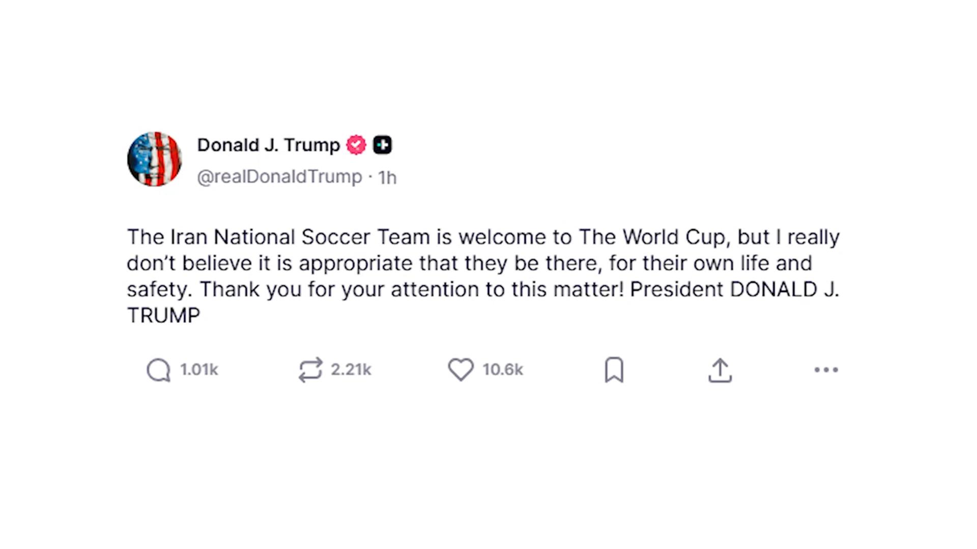 트럼프 "이란 월드컵 참가 안전상 부적절"
